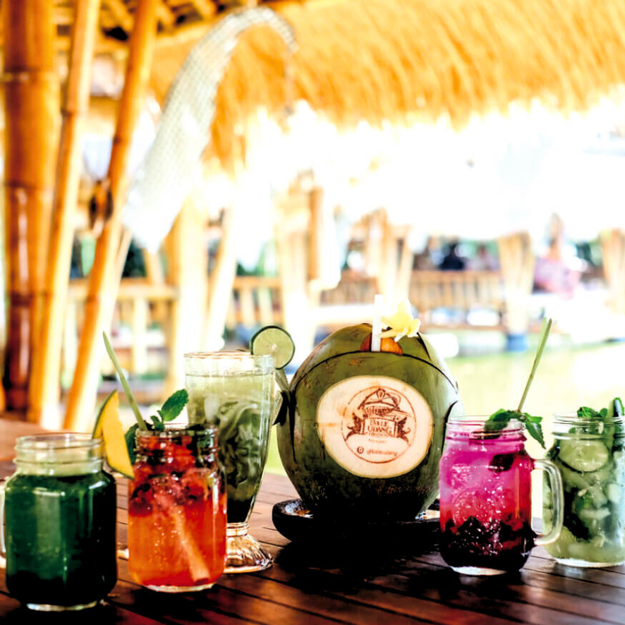 Bale Udang adalah restoran pertama di Bali yang menyajikan hidangan udang di bale terapung, menghadirkan suasana tenang di tengah hiruk-pikuk kota.